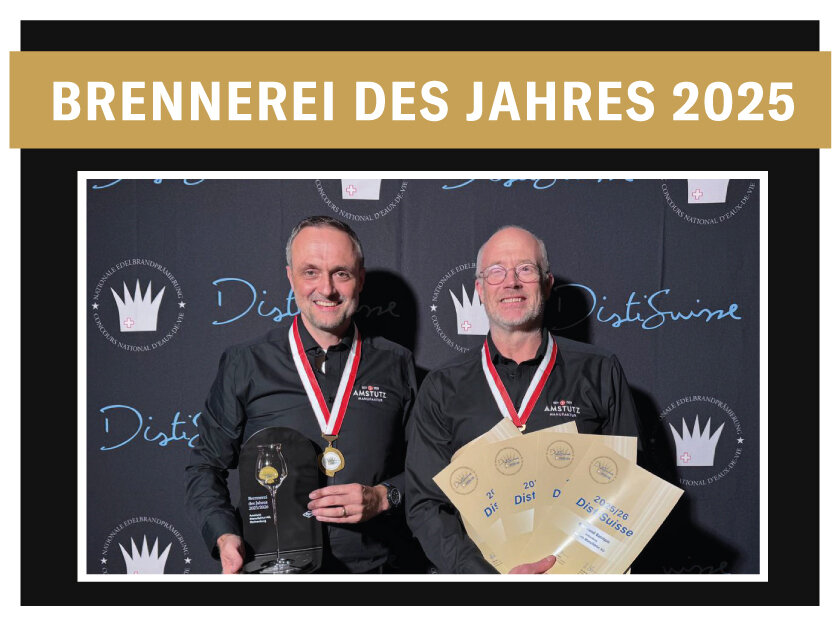 Die Amstutz Manufaktur wurde unter weit über 100 Brennereien aus der ganzen Schweiz zur «Brennerei des Jahres» gewählt. Damit erhielt die Amstutz Manfaktur an der nationalen Edelbrand-Prämierung viel Lob und Anerkennung für die hohe Qualität ihrer Produkte.